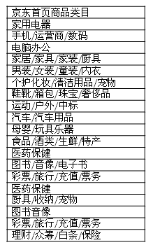 从当前各综合类商城的品类划分来看,我们简单采编了部分商城的类目,供大家参考: