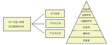 (1) 由一地的总经销商向另一地的经销商倒货,如甲将货倒给B,产品又经B分销到乙的其他下家从而使产品在乙地市场流通;或者产品反方向由乙地流向甲地市场;