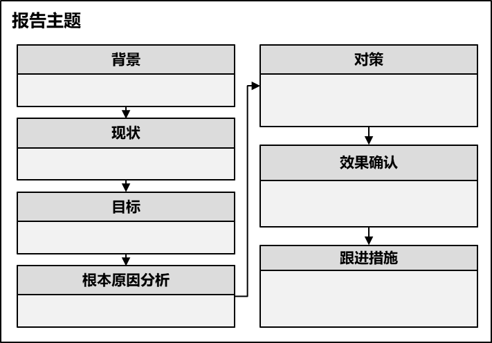 报告的分析方式  | 强调通过定量或定性的分析找出问题的根本原因  | 结合定量和定性的现状分析后提出的改进提案  | 分析的篇幅较少,更关注验证假设和行动措施的效果  |
