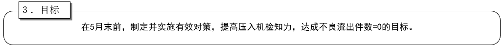 每个“A3报告”都以一个揭示主题内容的标题开始,这个主题客观地描述了该报告要解决的问题,让读者知道整个报告要讲述的主要内容。例如:
