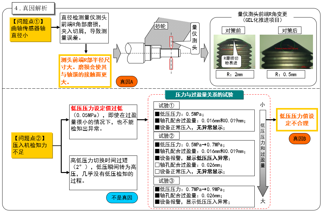 团队成员从上述问题原因中分析及识别导致问题点发生的根本原因,验证根本原因是否是真因,如操作者错误、准备的问题、未进行培训等。