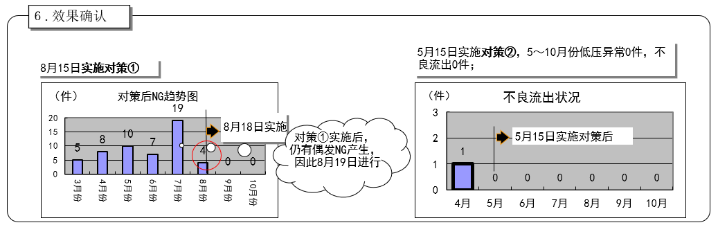 确认实施了改进方案后的状况,与目标对比,确认是否达到目标。确认实施方案与改进成果的因果关系,即明确是否确实是实施方案实现的改进成果.