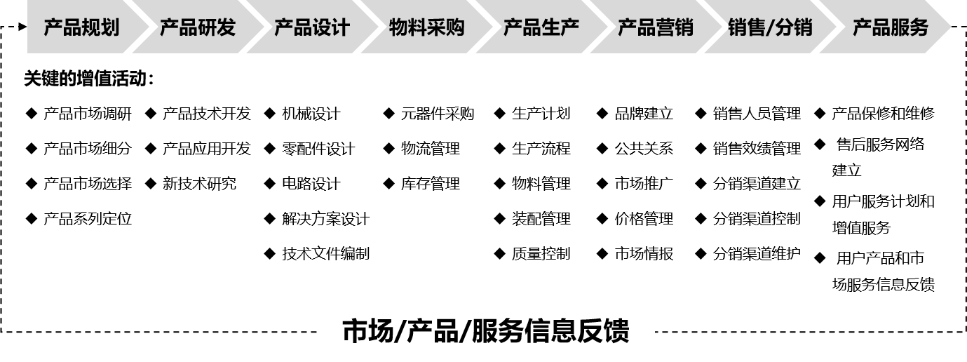 分析企业价值链与前项(供应商)或后项(渠道、客户)活动的价值链接口,解析市场推动力。价值链的两端往往是分析的重点,也是控制价值链最重要的环节。
