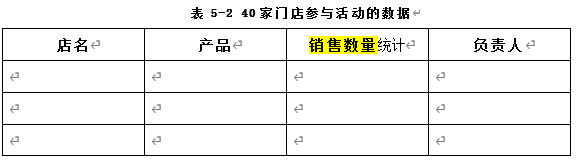 表5-2列明了40家门店的(店名、产品、任务、负责人店长)的详细情况。