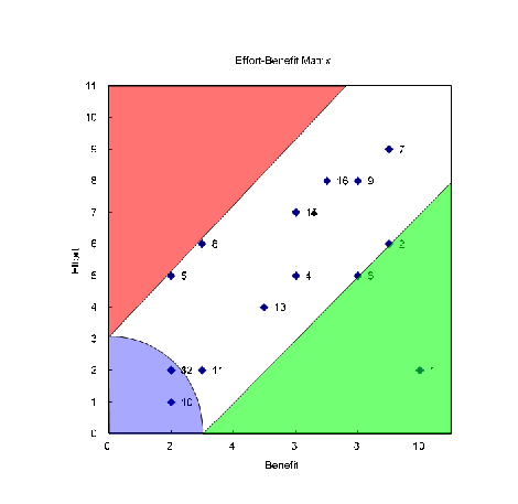 第二列投入项为改善其问题所需投入的资源总和(主要为人力、物力),从1~10,值越高代表投入越大。