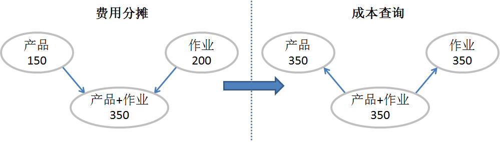 例如,某费用归集到产品A为150元,归集到作业1为200元,如表4-1所示。不能认为产品成本是150元,作业成本是200元。