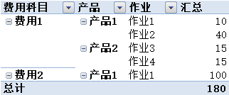 例如,"产品+作业"维度组合的成本为180元,如表4-6所示。