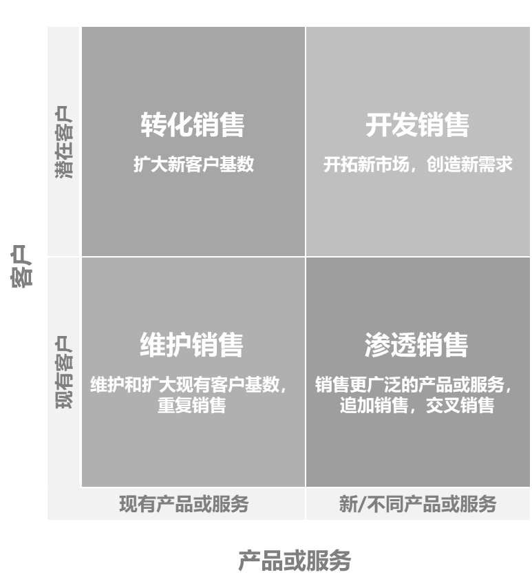 开发销售:是指通过销售新产品或服务吸引新客户。