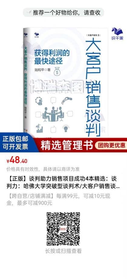 作为一本谈判的著作,当然也包括谈判沟通、报价、让步、签约等谈判技巧。可以说这是一本融合了大客户销售和谈判的著作。