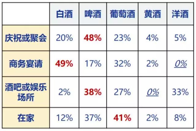 为什么会形成这种现象?因为各类酒与消费场景形成了强关系,有匹配性。