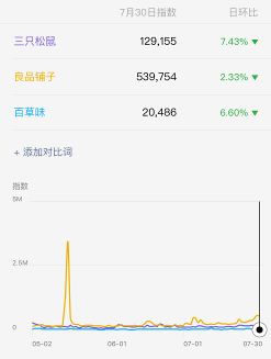 图9-7 三只松鼠、良品铺子、百草味快营销指数