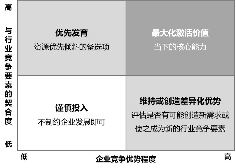 核心团队追求与产业匹配性;资源能力与竞争者比较的优劣势。