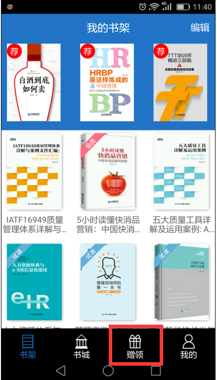 步骤三、打开app(苹果app请务必下载或更新到最新的3.1版本,更新请在appstore的更新或者搜索里边找到最新版本博瑞森图书app),在赠领处输入刮刮卡号码点击兑换电子书就会放置到您的书架上了。如下图。