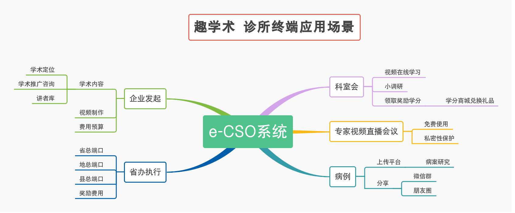趣宣讲(医生端)、趣科会(代表端)、趣患教(患者端)、趣学术(厂家PC端)。产品以学术传播为核心,从厂家到代表,代表到医生,医生到患者,以互联网技术将线下科室会转移到线上平台,解决从药企到医生的医药学术传播问题。目前已经助力数十家药企做学术推广,经验证,在线化学术会议效率至少是传统线下学术会议方式的十倍以上,而且效果更好。