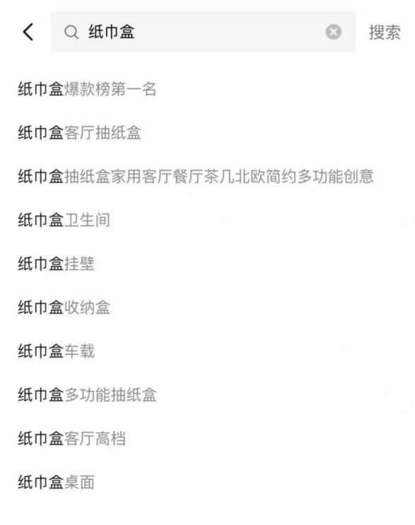 利用精选联盟选品中心、找到带货的短视频,提炼要素。除了一些付费工具外,官方也提供了很多我们可以学习借鉴的途径。比如在精选联盟用产品关键词纸巾盒搜索,就会出现与之相关的产品关键词,如图4.2所示。