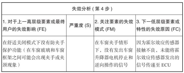 失效影响就是防夹控制模式失效导致的后果,比如夹伤手、夹到头或头发等,这个评分的标准与基础DFMEA的严重度评分标准是一样的。
