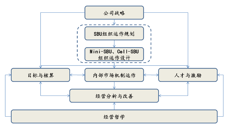 海尔公司独创性地采用了SBU经营机制,将目标、市场和分配三个基本元素整合为一种管理机制。SBU机制最终也是解决管理的“老大难”问题,即目标制订与实施、考核与薪酬、激励与改进。当然,任何一种模式都难以兼顾企业发展与员工发展,很难平衡各方利益关系,真正做到竞合和双赢。