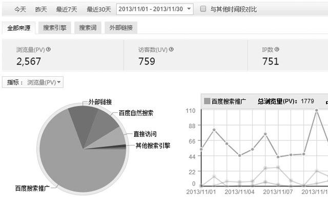总结:在与我们合作之前,他们每个月投入5000元百度竞价广告费,由于没有人打理,广告创意、关键词都是由百度客服来定的(据说,一个百度客服要管理上百家企业的广告账户,每天平摊到一个客户的时间只有几分钟,做不了有效的优化),加上无效的和恶意的点击比较多,自然效果不好,所以平均到每个月只能获得2个客户。同样还是5000元的广告投入,由于有专人从百度广告的每个细节优化,自然效果会翻倍,合作以后平均每个月获得4个客户。每月平均10个客户中,剩下来的6个就被自然排名和灌水带来的效果瓜分了。