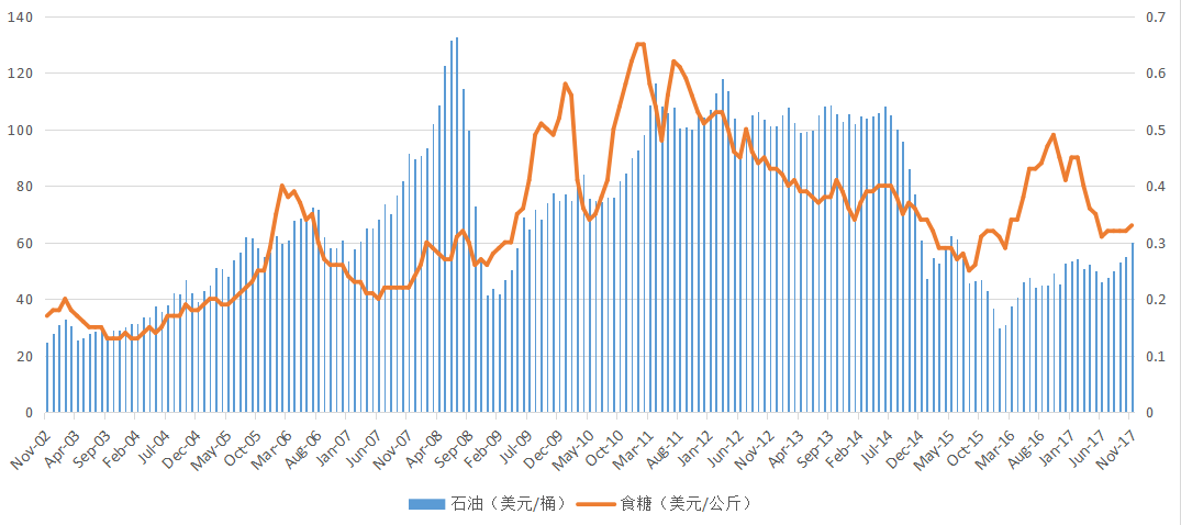 2010年开始,全球糖市迎来长达5年的供应过剩期。按理说,市场供过于求,食糖价格应该持续下行。但这时石油价格大涨,带动了对糖基乙醇的需求和全球食品价格大涨。结果,下半年,国际糖价开始暴涨,2011年初,达到有史以来的最高点——0.65美元/公斤。中国糖价从2009年的不到5000元/吨涨至最高7600元/吨,白糖被老百姓戏称为“糖高宗”。谁也没想到,这是全球糖市最后的疯狂。