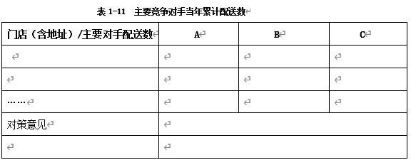 统计出一张表格(见表1-11),找到主要对手的流向,先统计当年累计数,等关系好了以后可以分析以往月度配送数据,这样销售的月度、季度变化数据出来了,找到数据好的原因,门店上量方案就会非常精准。