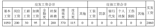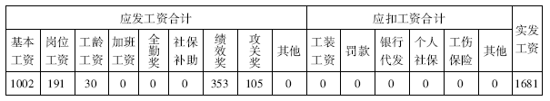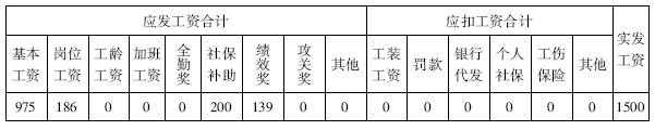 应扣款:工装扣款、罚款、个人社保、工伤保险、其他。