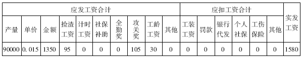7.7如:计件员工XX出勤为21天的工资计算方式如表2-9所示: