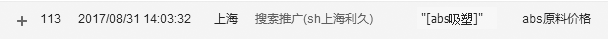 图7-22 关键词“ABS吸塑”使用的是精确短语匹配,却匹配出“abs原料价格”