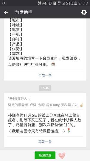 步骤11:群发成功(目前只支持文字或图片发送)。