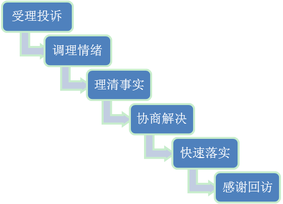 如果将客诉工作比作一个舞台,那么处理人员、投诉的消费者就是表演的主角。一般情况下,投诉者是带着“预案”而来,他们会提前设想诸多的处理应对方案,为实现投诉目的做了充分的心理准备;为解决好投诉,作为另一主角的客诉人员,也必须有相对应的方案。然而,做到这点是困难的,因为每一起投诉都有自己的特殊性。所以,投诉处理流程便应运而生,它是体现处理投诉规律的规范性文件,是实践经验的概括和总结,是我们以不变应万变的基础。