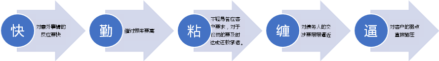 以上连环追款流程,从货款到期日起算至收回货款,共计花费时间约45天,在我司可接受范围内,超出天数回款的将根据情况暂停发放工资,情节严重的给公司财产造成损失的将根据坏账多少来承担一定比例的罚款;