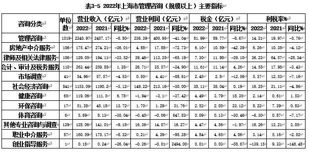 2022上海市咨询业经济效益受疫情影响,出现负增长。
