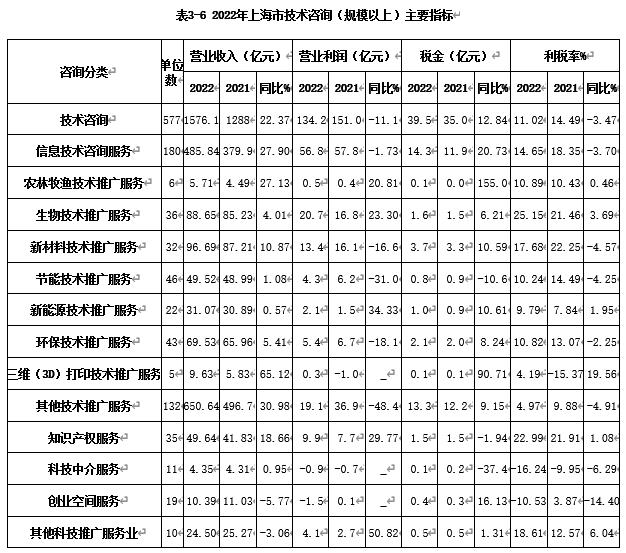 上海市技术咨询(规模以上)利税率为11.02%,比去年减少了3.47个百分点。