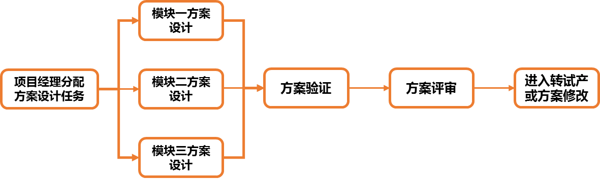 03 | 项目经理 | 组织对方案进行打样验证 | 一周 | 输入:各子模块设计方案 输出:样品验证 |