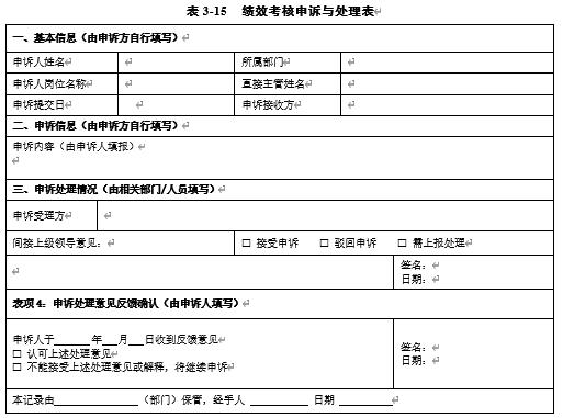 在绩效反馈之后,员工对考核结果存在异议时,应及时向人力资源部或上级领导提出投诉。提起投诉应采用书面文本、电子邮件等形式,但必须讲清楚投诉人、被投诉人及确切的申诉理由和证据。如果上级领导经过审查并处理好了投诉,则投诉终止。如果不能处理好投诉,则递交人力资源部门办理。