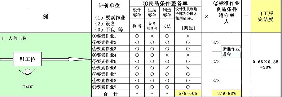 自工序完结度=良品条件的完善率×标准作业的遵守率