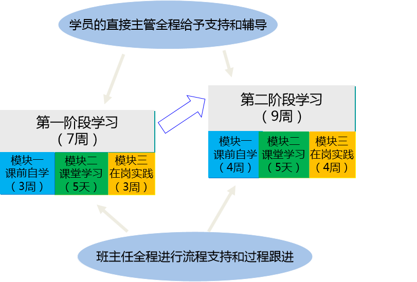 学员职责 | 按进度要求完成在线学习活动 | 积极主动全程按时参加课堂学习班 | 按时完成PARR在岗实践,并与上级主管回顾分享在岗实践体会与提升机会 | |