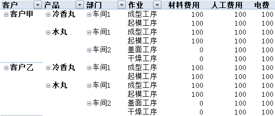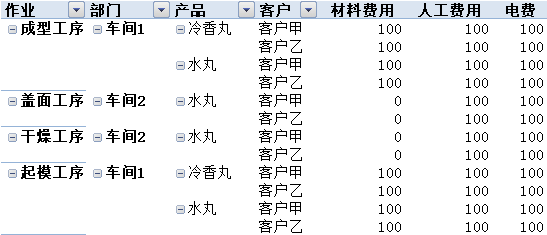有了各维度的成本计算表,就可以分别进行多维组合成本的分析查询了。