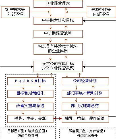 导入经营施工图方法,再结合方针管理的优势,我们提出了“方针目标管理”的思想,并通过构建和运营企业的方针目标管理机制,达到构建超强经营力和实现效益倍增的目的。