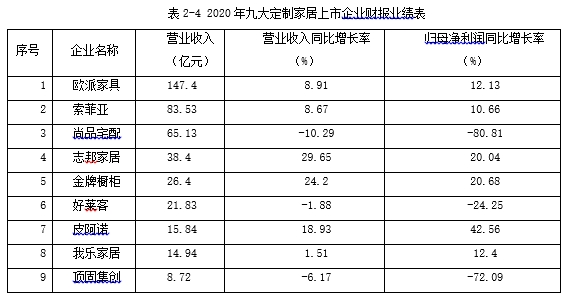 志邦家居成立于1998年,2005年进入中国厨卫行业前30名,2007年跻身中国厨卫行业第10名。2017年,志邦家居在上交所上市,当年营业收入位列全行业第5名。2019年家居定制行业由于受新冠疫情和房地产下行的双重影响,整个行业增长乏力,不少企业出现了负增长。而志邦家居却逆势而上,2020年营业收入同比增长接近30%,利润也增长20%以上,行业排名也上升到第4名(见表2-4)。据最近的数据,2022年,志邦家居的营业收入首次进入行业前三甲。