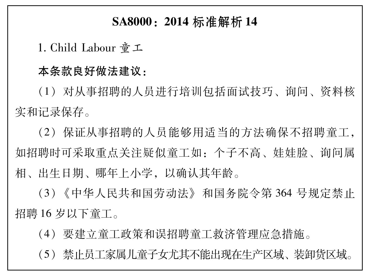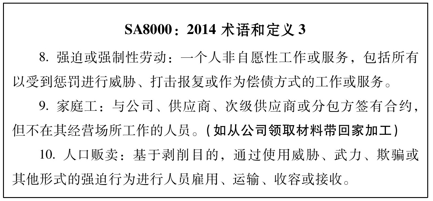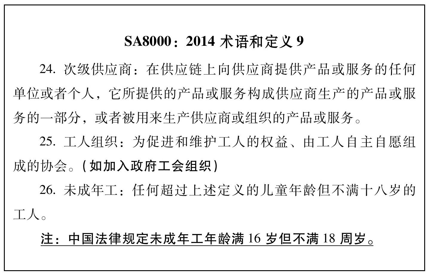 3.自2016年1月1日起,唯一可接纳的社会责任认证标准将统一为SA8000:2014版。