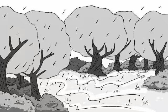 (漫画配文:天降大雨,森林看海,咱哥仨一起出发去找坚果。一桶“坚小果”耶!他俩喜欢核桃,我不发表意见。他俩真扛着“核桃”高高兴兴地走了。鼠才啊,我服了。我用尾巴钓油吃。不容易,这可是个技术活……)