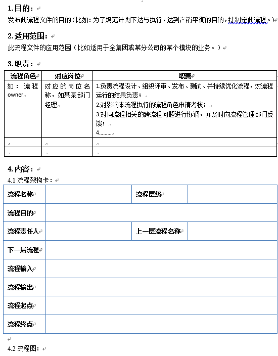 以上标准模板,各位读者可以直接套用,这些标准化的内容都是实践中的经验总结,对于没有开展过流程管理标准化的公司来说,可以少走弯路,直接应用。