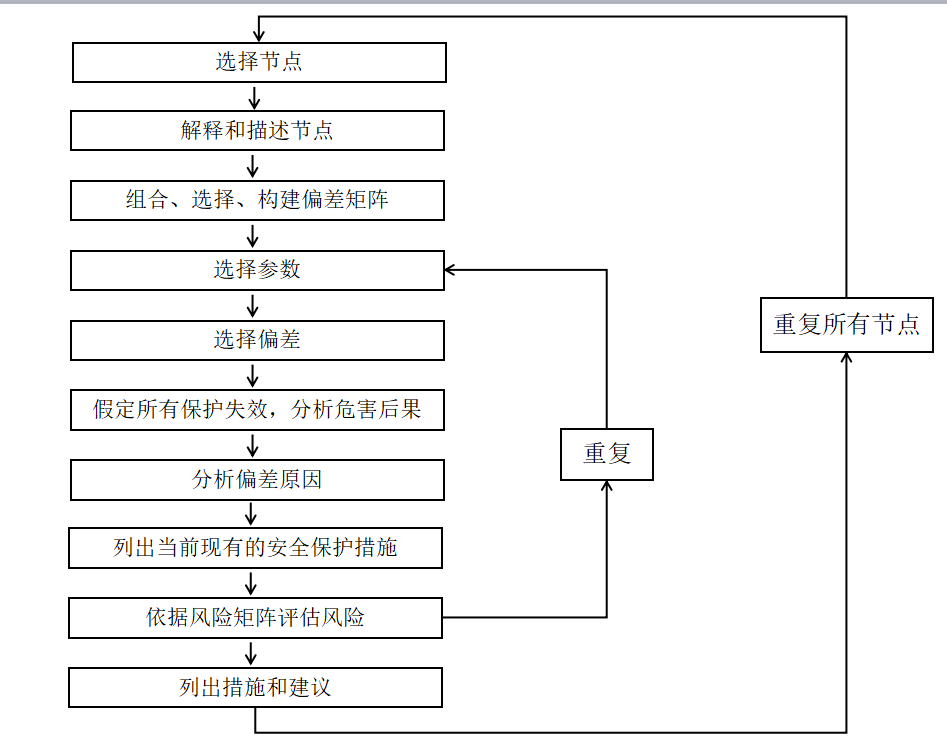 HAZOP分析对工艺或操作的特殊点进行分析,这些他书店称为“分析节点”、“工作单元”或“操作步骤”。HAZOP分析小组分析每个节点,识别出那些具有潜在危险的偏差,并对偏差原因、后果及控制措施等进行分析,最终形成HAZOP分析报告。