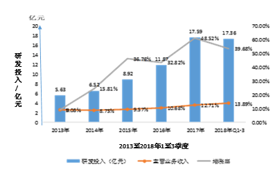 图2-30 恒瑞医药2013年至2018年前三个季度研发、收入与增长率情况