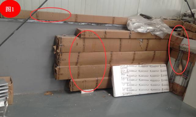 上图图1、图2是原料库,该原料库由于面积较小,产品堆放很密,直接把靠墙的原料挤在里面。如果要拿靠墙的原料,就要清理出一条路,这样每天得要多少工人去搬运,产生了浪费。