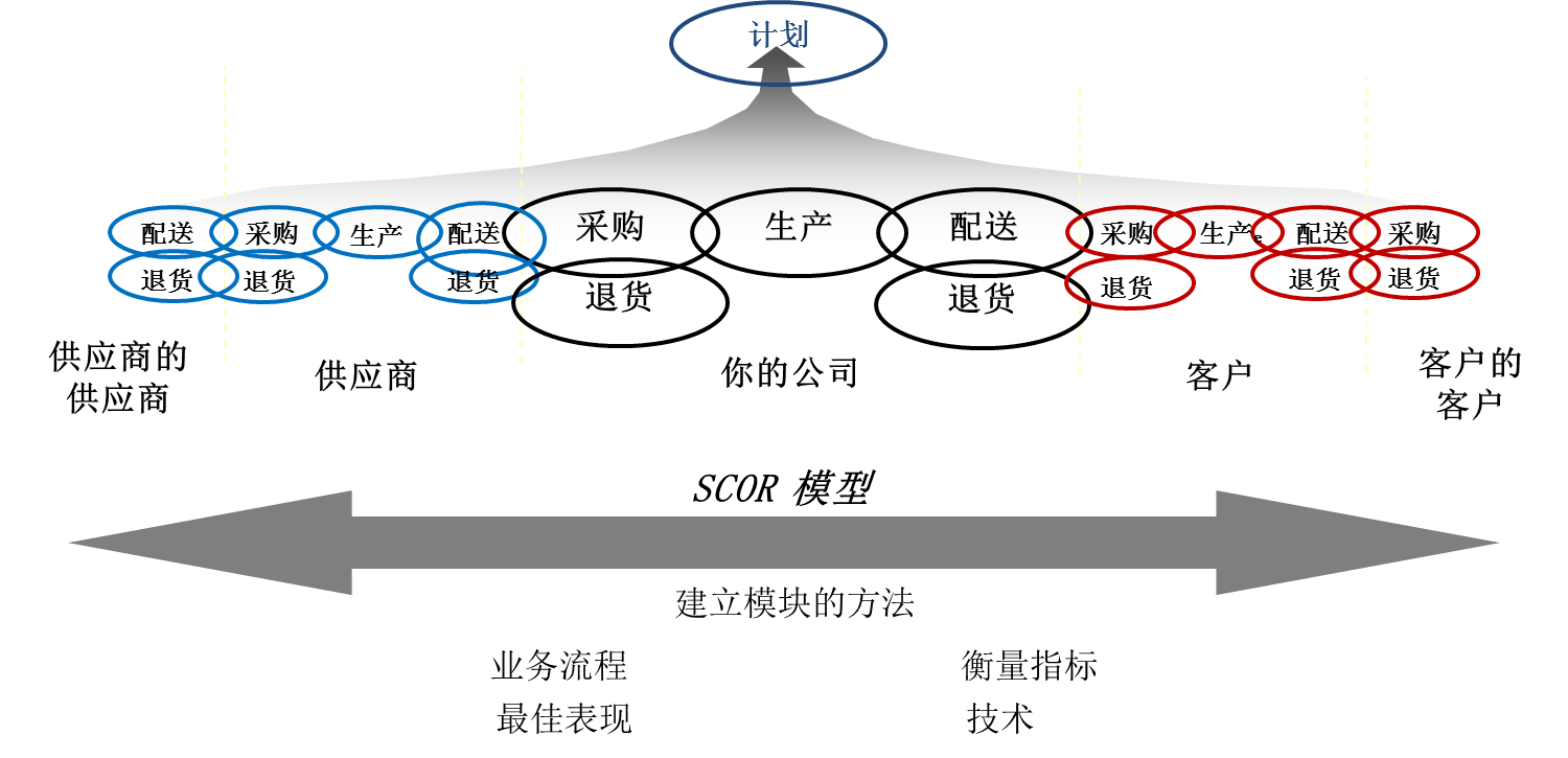 供应链运作参考模型(Supply-Chain Operations Reference model)简称SCOR模型,它是由国际供应链协会开发,适合于不同工业领域的供应链运作参考模型。