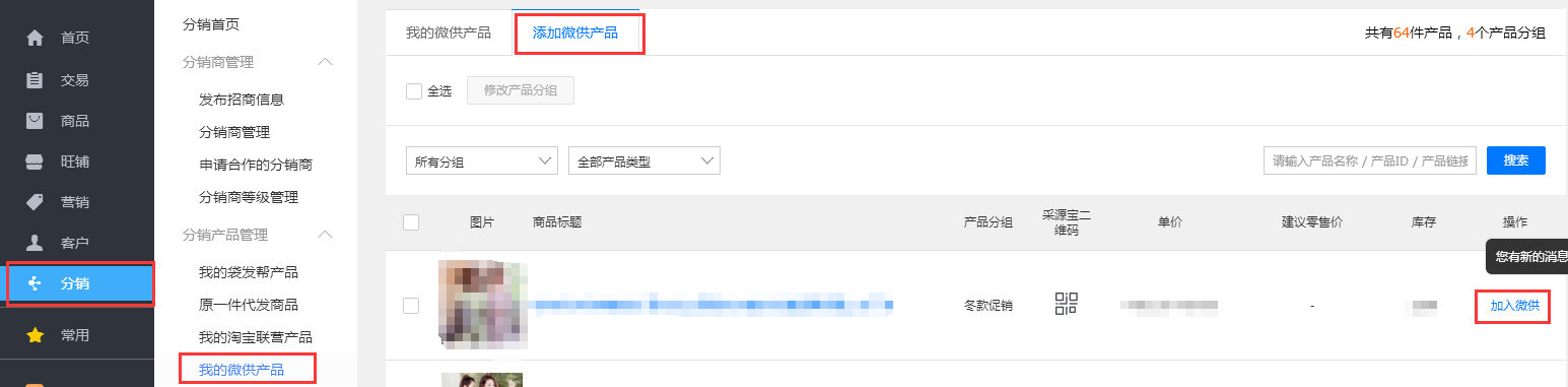 2)路径是:我的阿里后台——1688卖家工作台——分销——淘货源分销。