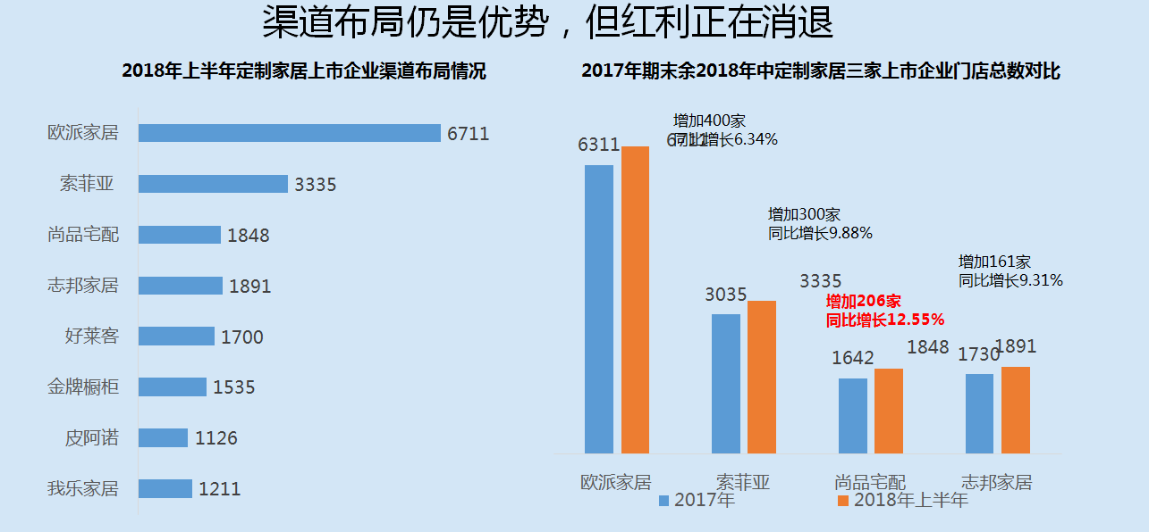 渠道布局是优势,但红利也会消退。例如欧派家居开店400家,但对于其庞大的基数,所起到的业绩增长作用不大。