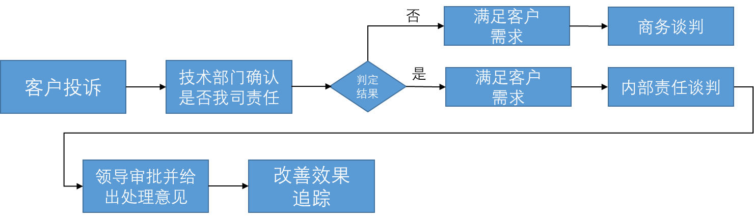 经过改进后,对于只要确定是我司责任造成的问题,一律先满足客户需求,而且哪怕不是我司责任造成的,也要先满足客户需求,至于后续的商务问题,走商务谈判流程解决。如果流程再激进一点,甚至可以将满足客户需求列为流程第二环节,这样客户满意度更高,当然,前提是要风险可控。相信在这样的流程方案下,客户满意度会非常高。