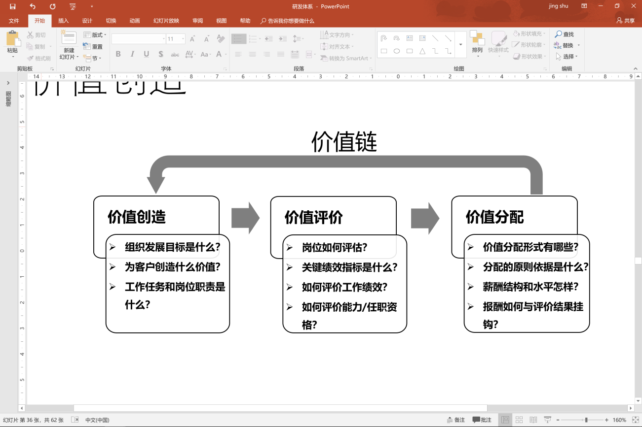 价值分配 | 研发体系的激励机制受到公司整体薪酬结构影响,且需要付出比较高昂的成本 价值评价结果与价值分配如何关联,需要结合实际情况而定 研发激励的范围和力度是否合理,直接影响到研发体系的运作效率 |